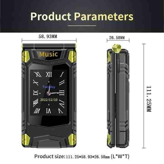 15. Functions: Camera, video recording, video playback, music playback, recording, FM radio, Bluetooth, alarm clock, calculator, calendar, SOS supports 5 groups, family dialing/quick dialing: 9 groups, social software: Browser, facebook, whatsapp; Triple-proof appearance, dual large screens (2.8 inch + 2.4 inch), large buttons, shortcut buttons, side button one-touch flashlight switch, large speaker with loud sound, large battery, long standby, loud earpiece, vibration, flashlight, large font; Can store 100 mobile phone numbers and 200 text messages. Long press the 0 key for SOS emergency call, long press the # key to switch between vibration, music and silent modes