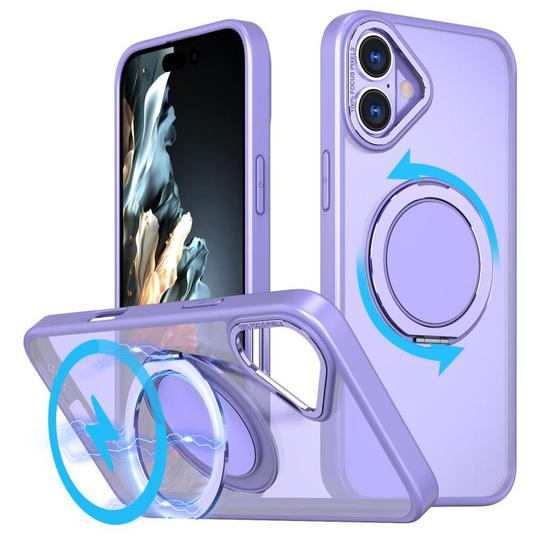 For iPhone 16 Kalebol 360-degree Rotating MagSafe Magnetic Holder Phone Case(Light Purple)