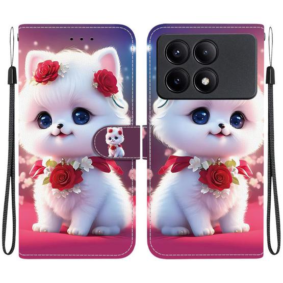 For Redmi K70E / Xiaomi Poco X6 Pro Crystal Texture Colored Drawing Leather Phone Case(Rose Cat)
