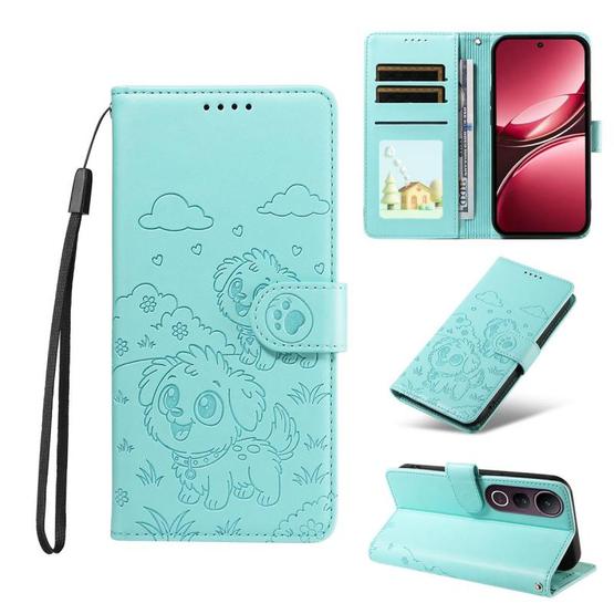 For vivo V50 Lite 4G / 5G Embossed Heart Dog RFID Blocking Wallet Leather Phone Case(Green)