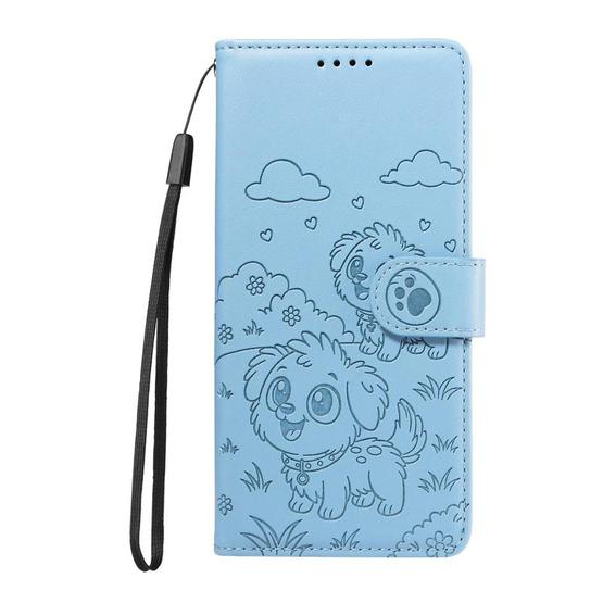 For OPPO A58 4G Embossed Heart Dog RFID Blocking Wallet Leather Phone Case(Sky Blue)