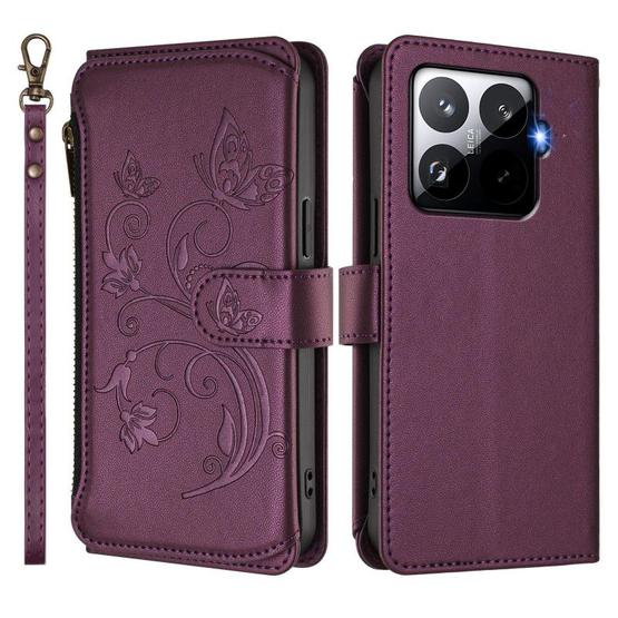 For Xiaomi 15T Pro 5G Butterfly Love Flower Multi-card Zipper Wallet Leather Phone Case(Dark Purple)