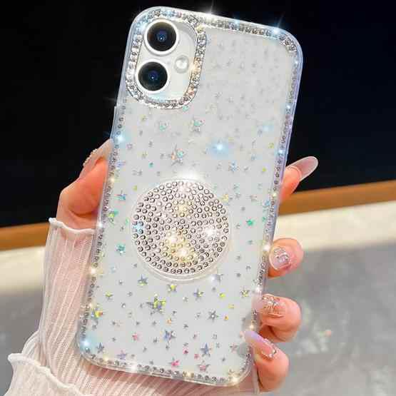 For iPhone 17 Diamond Glitter Diamond Round Holder Phone Case(Transparent Stars)