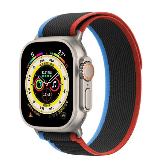 For Apple Watch 6 / 5 / 4 / SE 44mm Wild Path Loop Nylon Watch Band with 3D Curved Film(Blue Black)