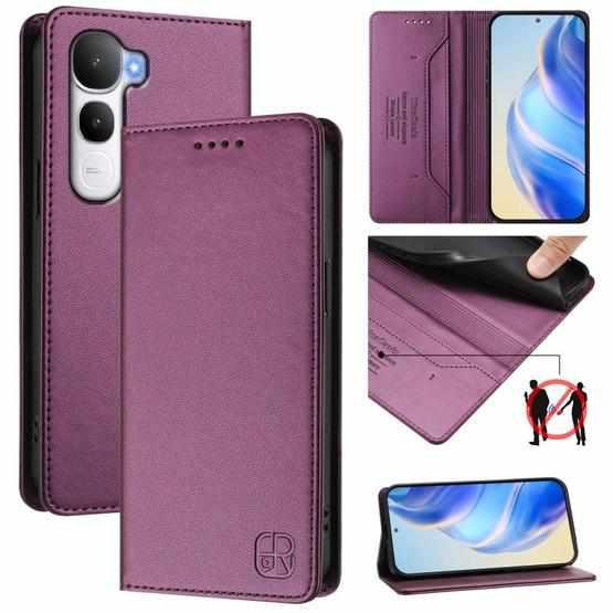 For vivo Y400 5G Global RC01 Dual-Folded Magnetic Suction RFID Leather Phone Case(Violet)
