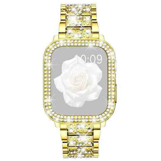 For Apple Watch Series 10 42mm xDfind Diamond Jewelry Metal Watch Band with Case(Gold)