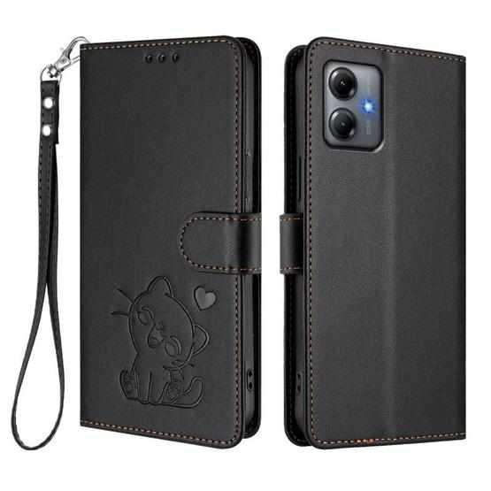 For Motorola Moto G14 4G / G54 Embossed Heart Cat Leather Phone Case with Strap(Black)