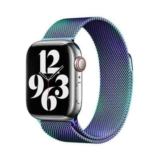 For Apple Watch Series 41mm Milanese Stainless Steel Watch Band with 3D Curved Film(Colorful)