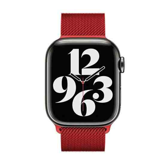 For Apple Watch Series 38mm Milanese Stainless Steel Watch Band with 3D Curved Film(Red)