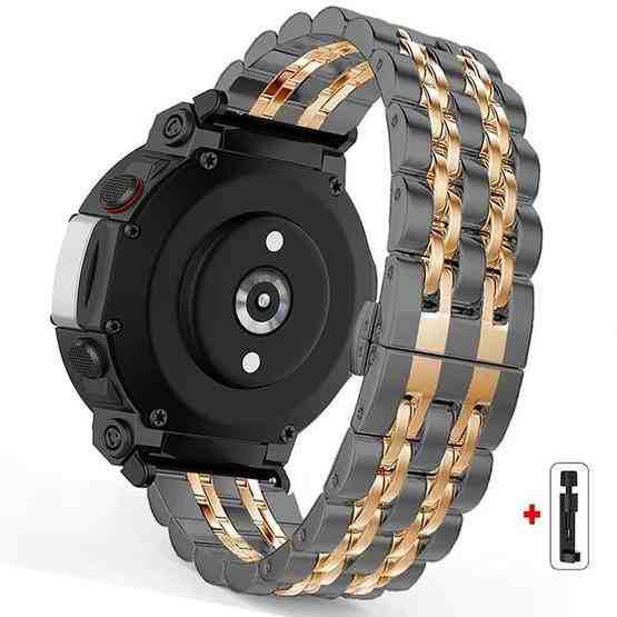 For Amazfit T-Rex 3 Seven Beads Butterfly Buckle Stainless Steel Watch Band(Black Rose Gold)