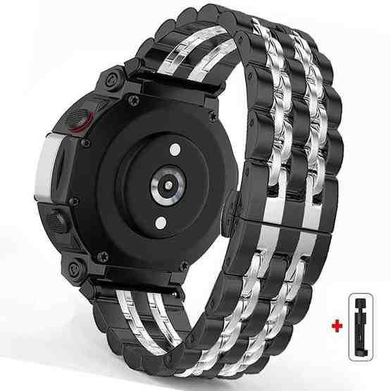 For Amazfit T-Rex Pro Seven Beads Butterfly Buckle Stainless Steel Watch Band(Black Silver)