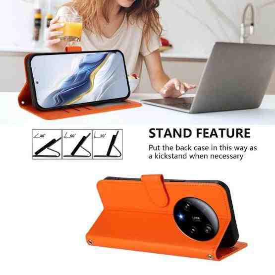 For Xiaomi 13 Ultra Embossed Heart Cat Leather Phone Case with Hand Strap(Orange)