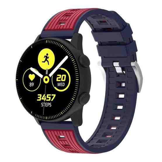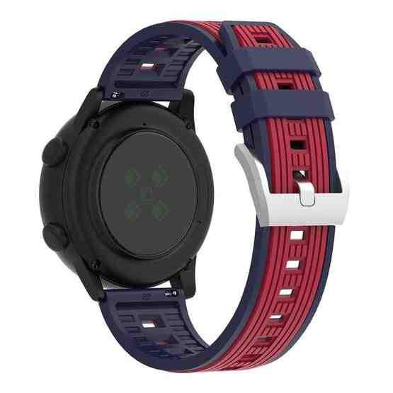 22mm Two Color Vertical Striped Silicone Watch Band(Navy Blue Wine Red)