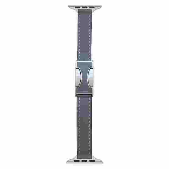 For Apple Watch 42mm / 41mm / 40mm / 38mm Magnetic Buckle 14mm Plain Genuine Leather Watch Band(Grey)