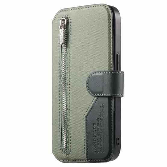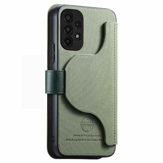 For Samsung Galaxy A13 4G Twill Fabric MagSafe RFID Anti-theft Zipper Wallet Leather Phone Case(Green)
