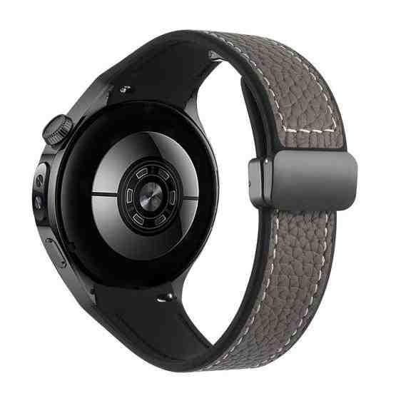 For Huawei Watch 5 46mm Silicone Hybrid Leather Magnetic Buckle Watch Band(Grey Grain Leather Black)
