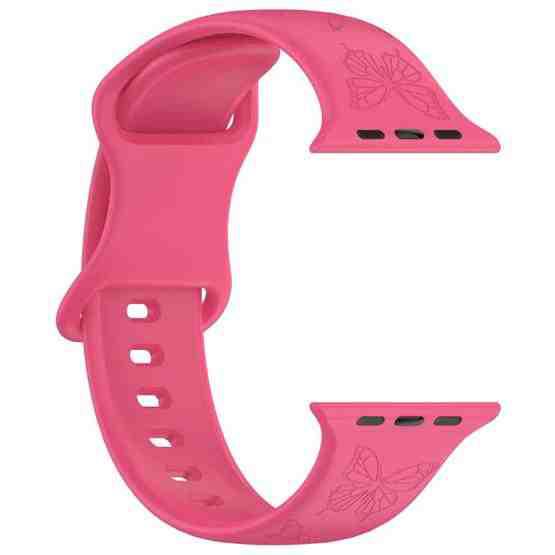 For Apple Watch 46mm / 49mm / 45mm / 44mm Kalebol 8-shaped Buckle Butterfly Embossed Silicone Watch Band(Peach Red)