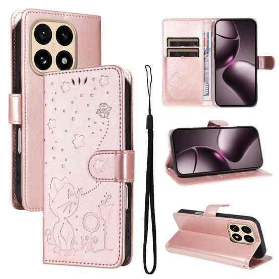 For Xiaomi 15T 5G Cat and Bee Embossed Flip Leather Phone Case(Rose Gold)