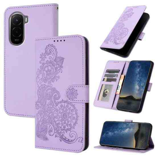 For Xiaomi Poco M7 4G 169mm Datura Flower Embossed Flip Leather Phone Case(Purple)