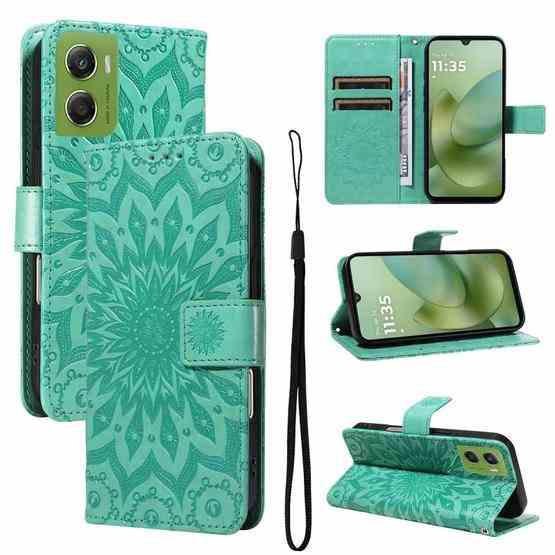For Motorola Moto G06 4G Embossed Sunflower Pattern Flip Leather Phone Case(Green)