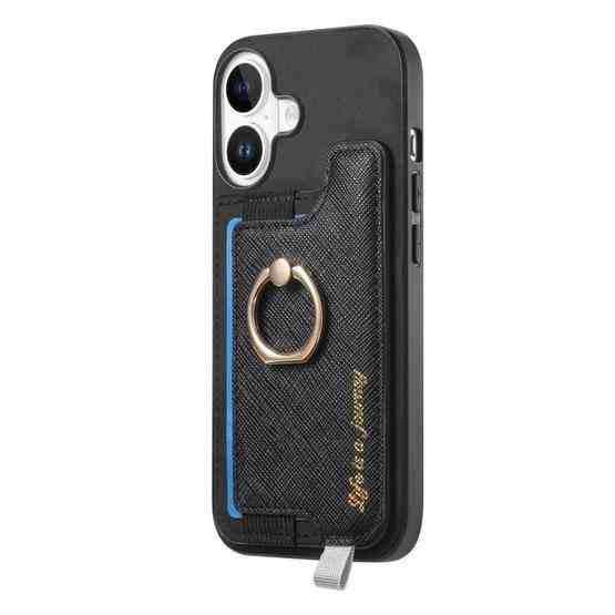 For iPhone 17 Retro Magsafe Cross Leather Ring Holder Card Bag Phone Case(Black)