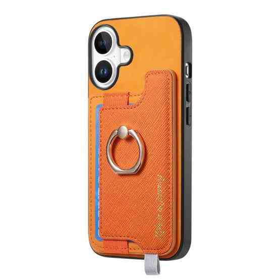 For iPhone 17 Retro Magsafe Cross Leather Ring Holder Card Bag Phone Case(Yellow)