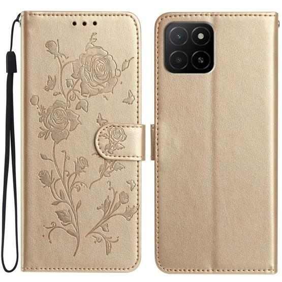 For Honor X5b Rose Flower Embossing Pattern Leather Phone Case(Gold)