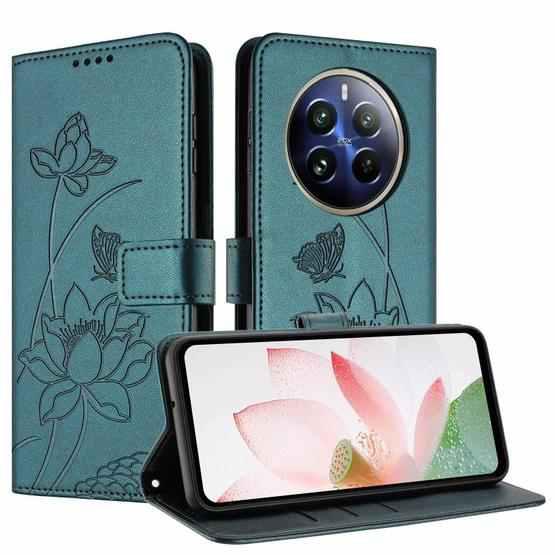 For Realme 12+ 5G / 12 4G / P1 5G Global Lotus Embossed Leather Phone Case with Lanyard(Dark Green)