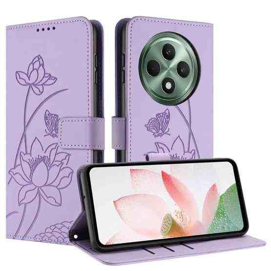 For OPPO Reno12 F 5G / 4G Global Lotus Embossed Leather Phone Case with Lanyard(Purple)