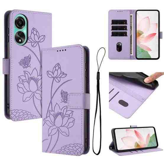For OPPO A38 4G / A18 Lotus Embossed Leather Phone Case with Lanyard(Purple)