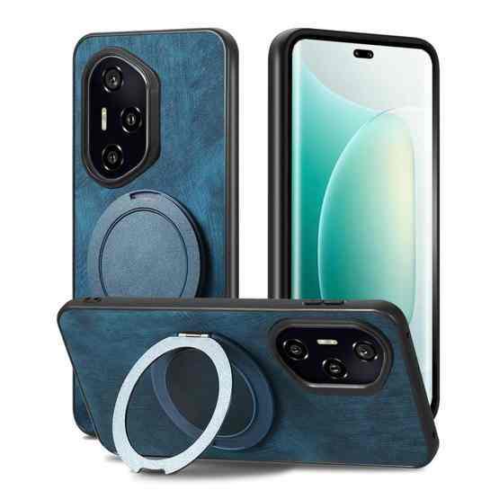 For Honor 300 Pro Retro Leather Rotation Round Holder Phone Case(Blue)