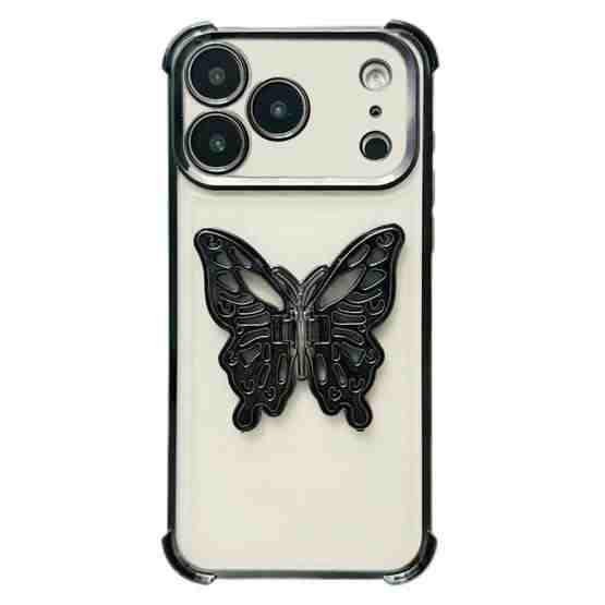 For iPhone 17 Pro Max Electrpolated 3D Butterfly Holder TPU Phone Case(Black)