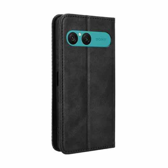 For Sony Xperia 10 VII Magnetic Buckle Retro Texture Leather Phone Case(Black)
