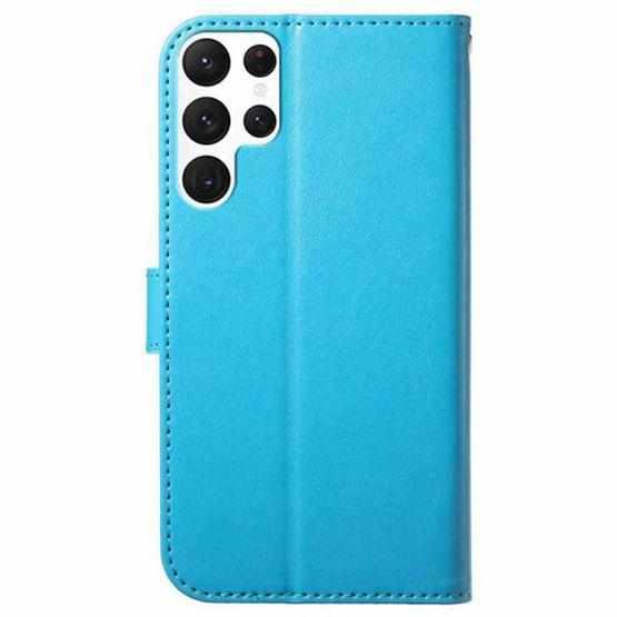 For Samsung Galaxy S22 Ultra 5G Lambskin 8-card Slot Leather Phone Case(Light Blue)